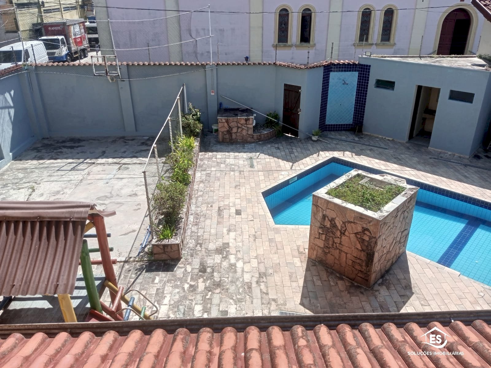 piscina com Playgroud e quadra de esportes