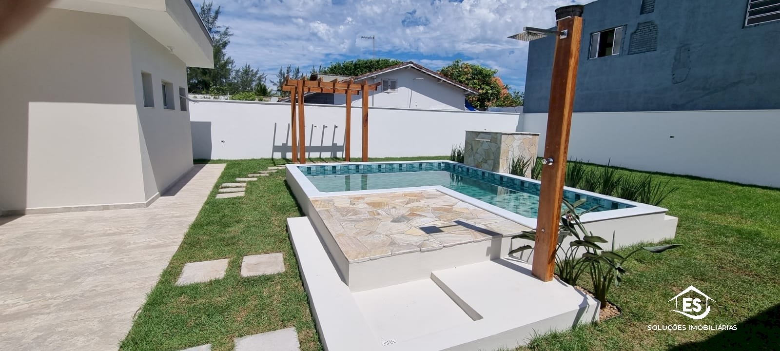 - piscina com prainha e área seca cascata