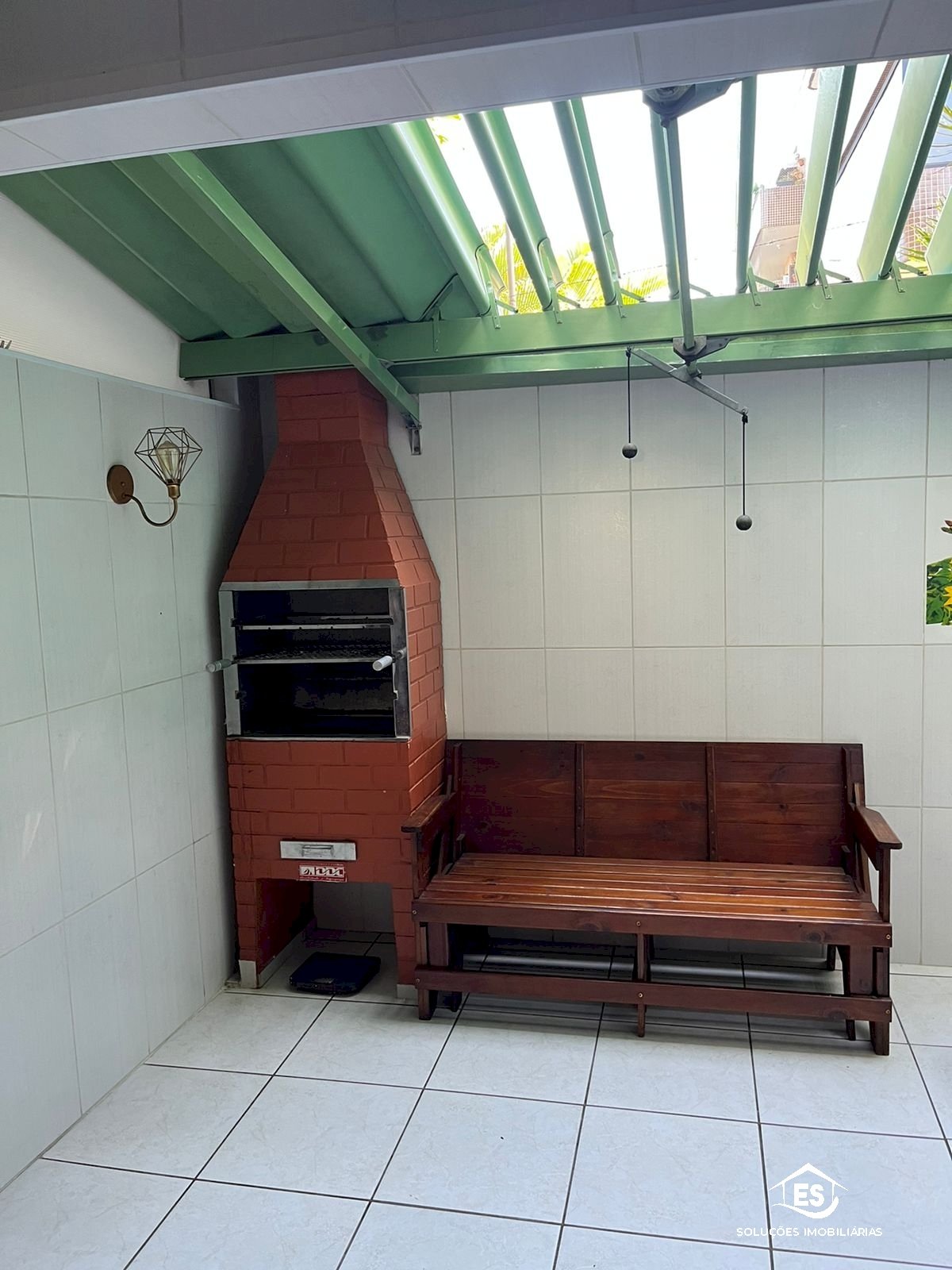 Área externa com churrasqueira e escadaria acesso ao piso superior